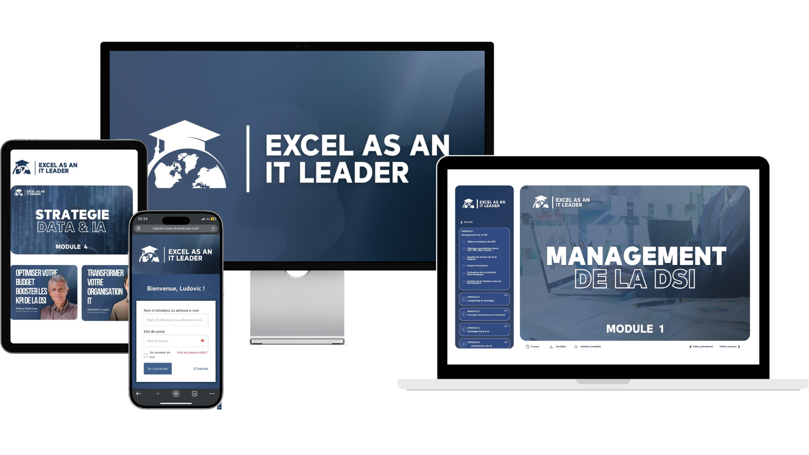 Accédez à la formation Excel as an IT Leader via notre plateforme partenaire Digiforma, avec plus de 30 heures de cours disponibles en ligne. Profitez également de webinars ponctuels, de livrables concrets, de templates opérationnels et de méthodes issues des plus grands cabinets de conseil. Une expérience flexible, accessible à tout moment, pour progresser à votre rythme.